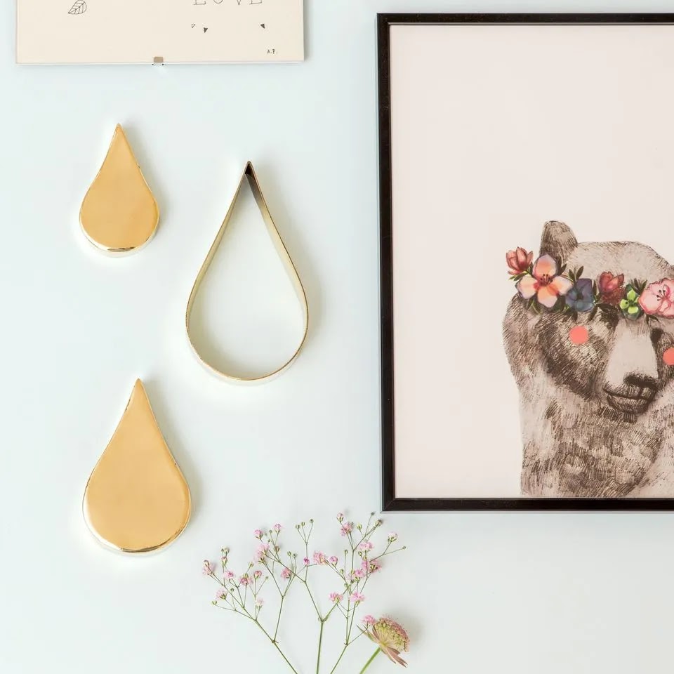 Pas besoins de changer la couleur des murs pour refaire la déco de sa chambre. Pour lui redonner du simple on mise sur des accessoires déco précieux à prix mini, comme ces larmes en cuivre qui apportent tout de suite de la brillance sur un mur terne. Le Must ? Donner l’impression qu’elles se sont échappées d’un tableau en composant tout autour avec des affiches rétro.