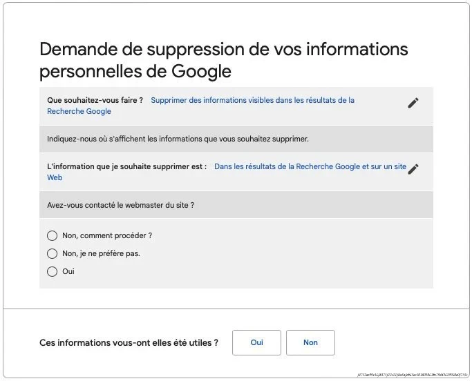 Enfin, il est possible de demander la suppression de résultats de recherche sur Google. Pour cela, rendez-vous sur le site d’aide de Google, où vous trouverez un formulaire à remplir pour demander la suppression de certaines informations. Les motifs acceptés incluent la présence de données personnelles sensibles ou des contenus nuisibles. Il est crucial de fournir des détails précis et de respecter les consignes pour maximiser vos chances d’obtenir une réponse favorable.
