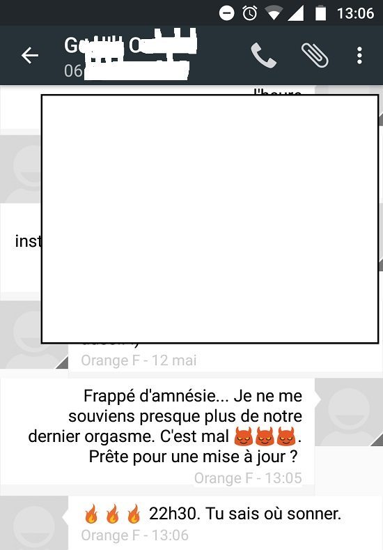 Majolie, 23, Paris : ? en vrai, si je pouvais baiser mon mec dans la gare quand il me rejoint chez moi les wee-ends, je le ferais . Il commence toujours à me chauffer une demi-heure avant d'arriver, en composant de très beaux sextos, il commence toujours par de jolis compliments … Mais très vite j'en veut plus, je veut le bouffer, quand il commence à parler de mon cou, de mes hanches, et qu'il décrit la manière dont il va me prendre et l'envie qu'il a de me voir le chevaucher.